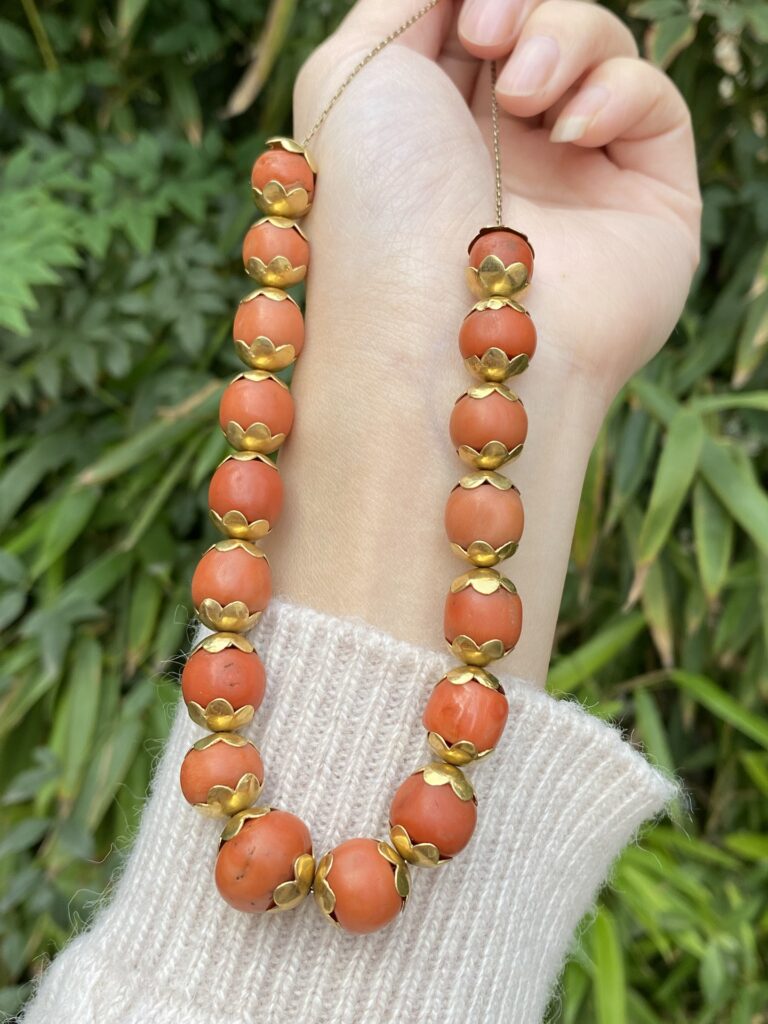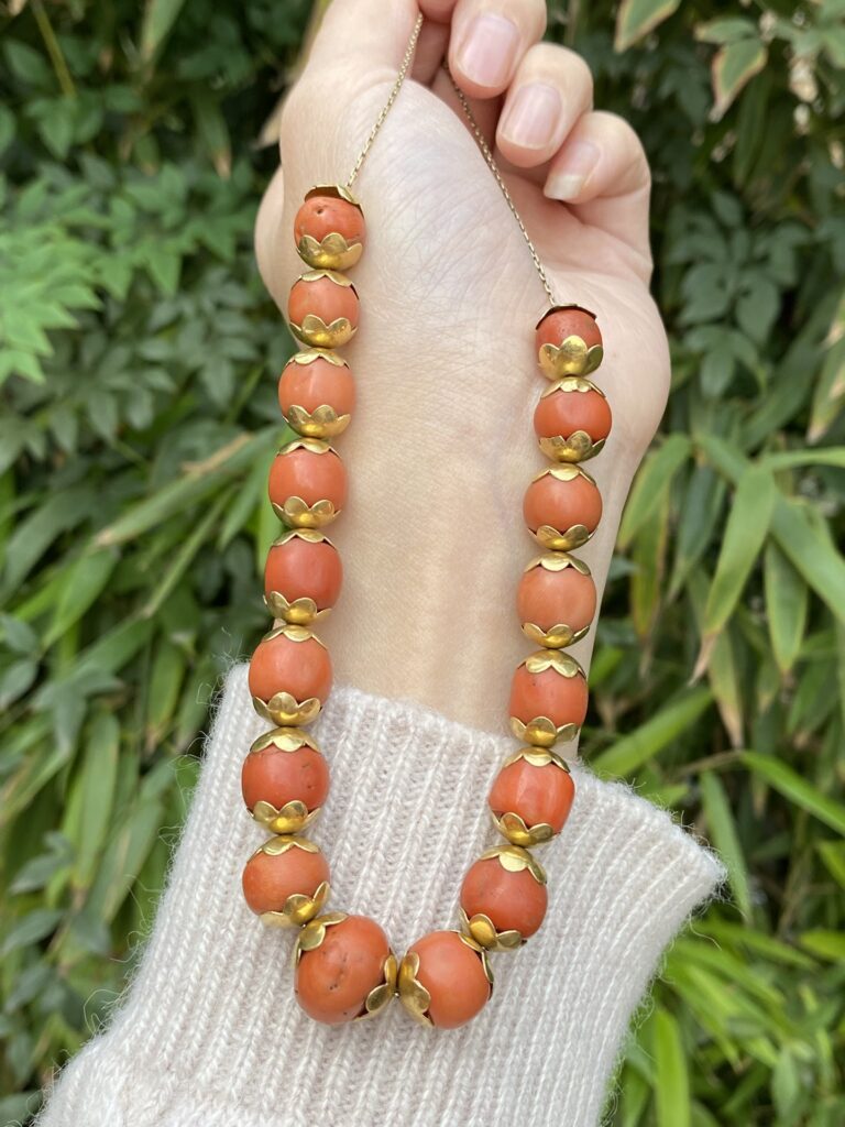 / Collar antiguo de coral natural con detalles en oro 19K y 11K – Belleza clásica y refinada