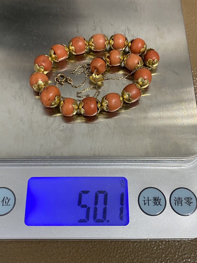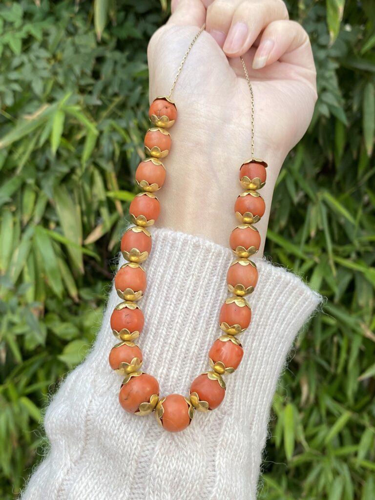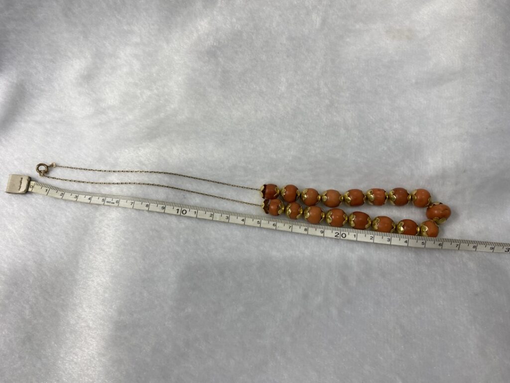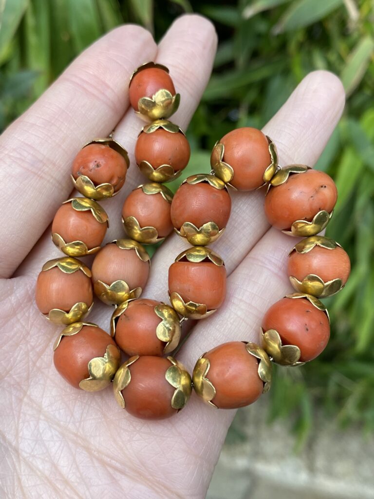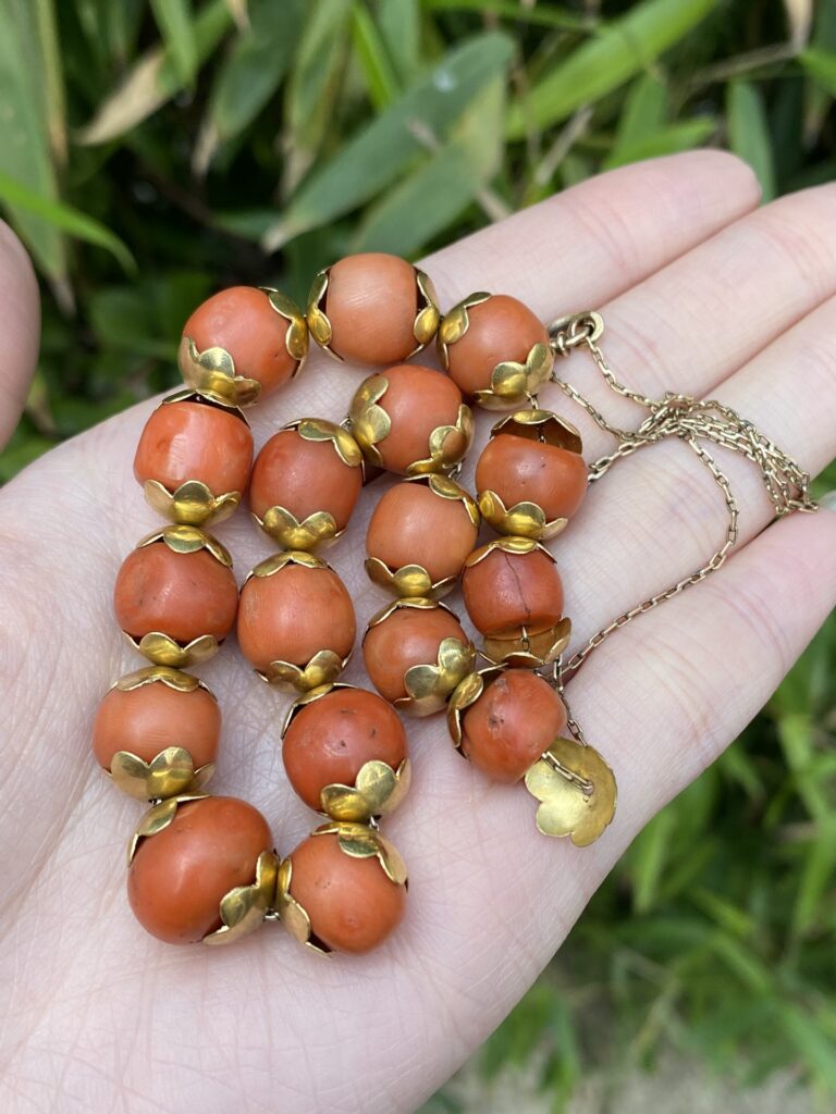 Collar de coral antiguo con detalles en oro 19K y 11K, 50g de historia y distinción.