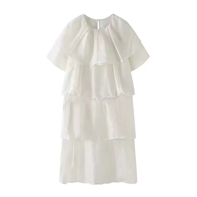 这条白色的裙子有褶皱的分层和细节,是凉爽优雅的完美外观,是休闲场合或夏季活动的理想选择。